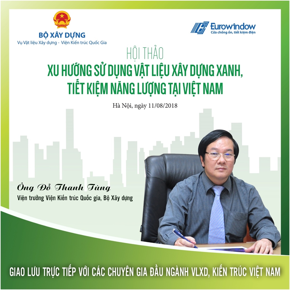 Hội thảo “Xu hướng sử dụng vật liệu xây dựng xanh, tiết kiệm năng lượng tại Việt Nam” sẽ được tổ chức tại Tầng 18, Eurowindow Office Building, Hà Nội vào ngày 11/08/2018.