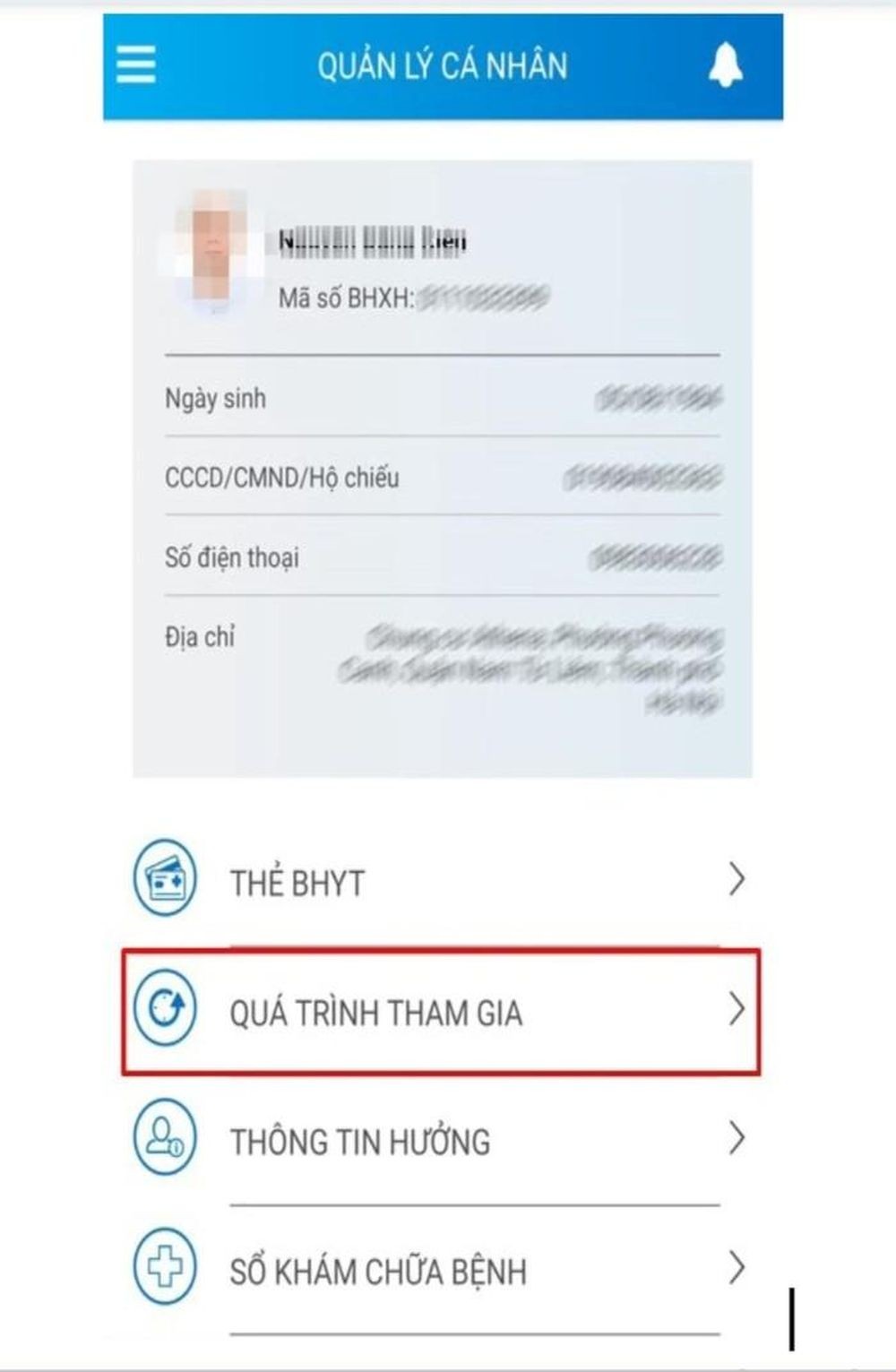 Bước 1. Sau khi đăng nhập ứng dụng, chọn chức năng "QUÁ TRÌNH THAM GIA".