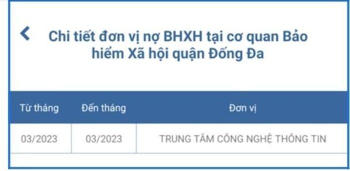 BHXH ... thông báo chi tiết thời gian chưa đóng BHXH, BHYT, BHTN, BHTNLD - BNN tại đơn vị [Mã đơn vị] - [Tên đơn vị] như sau:
