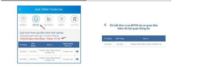 Tương tự như trường hợp xem chi tiết thời gian chưa đóng BHXH (như mục 1), sau khi đăng nhập, tại bước 2, chọn "BHTN" để xem thời gian chưa đóng BHTN: