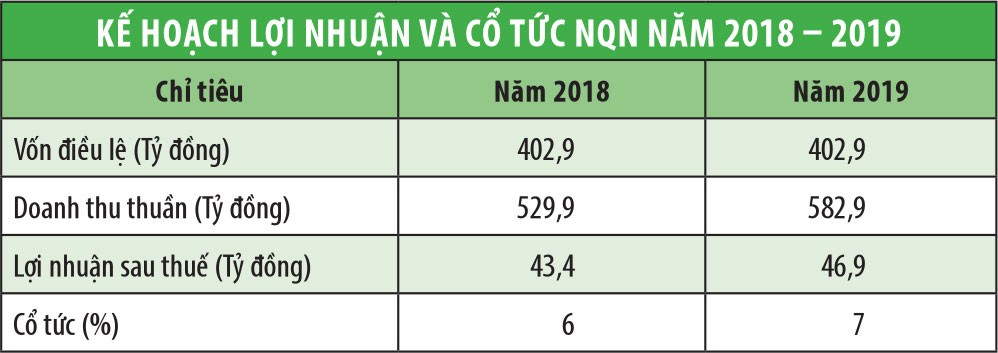 Năm 2018, NQN đặt kế hoạch doanh thu thuần 529,9 tỷ đồng, giảm 24 tỷ đồng so với năm 2017; lợi nhuận sau thuế 43,4 tỷ đồng, tăng nhẹ 3,5 tỷ đồng so với năm trước đó.