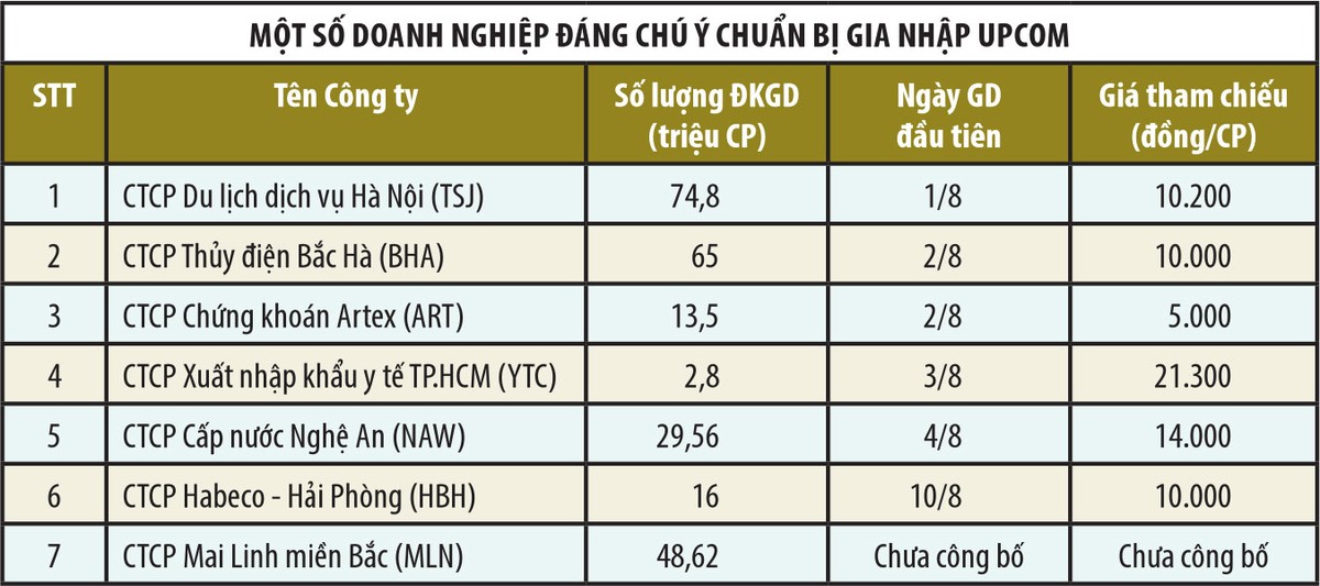 Một số cái tên đáng chú ý cũng chuẩn bị là “tân binh” của UPCoM như CTCP Du lịch Dịch vụ Hà Nội (TSJ) với quy mô vốn điều lệ khá lớn gần 750 tỷ đồng; CTCP Xuất nhập khẩu y tế TP.HCM (YTC) có quy mô vốn nhỏ, song kinh doanh tương đối hiệu quả, với tỷ suất ROE đạt lần lượt 22,2% và 21% trong 2 năm gần nhất, mức cổ tức chi trả đạt trên 20% từ 2014 đến nay.
