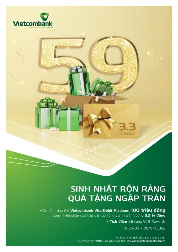 Ngoài ra, khi thực hiện các giao dịch trong phạm vi VCB Rewards từ ngày 26/03 – 09/04/2022 như thanh toán thẻ hoặc thanh toán, mua sắm trên kênh ngân hàng số VCB Digibank, khách hàng sẽ được nhân 03 lần tỷ lệ tích điểm. Thể lệ chi tiết tại đây.