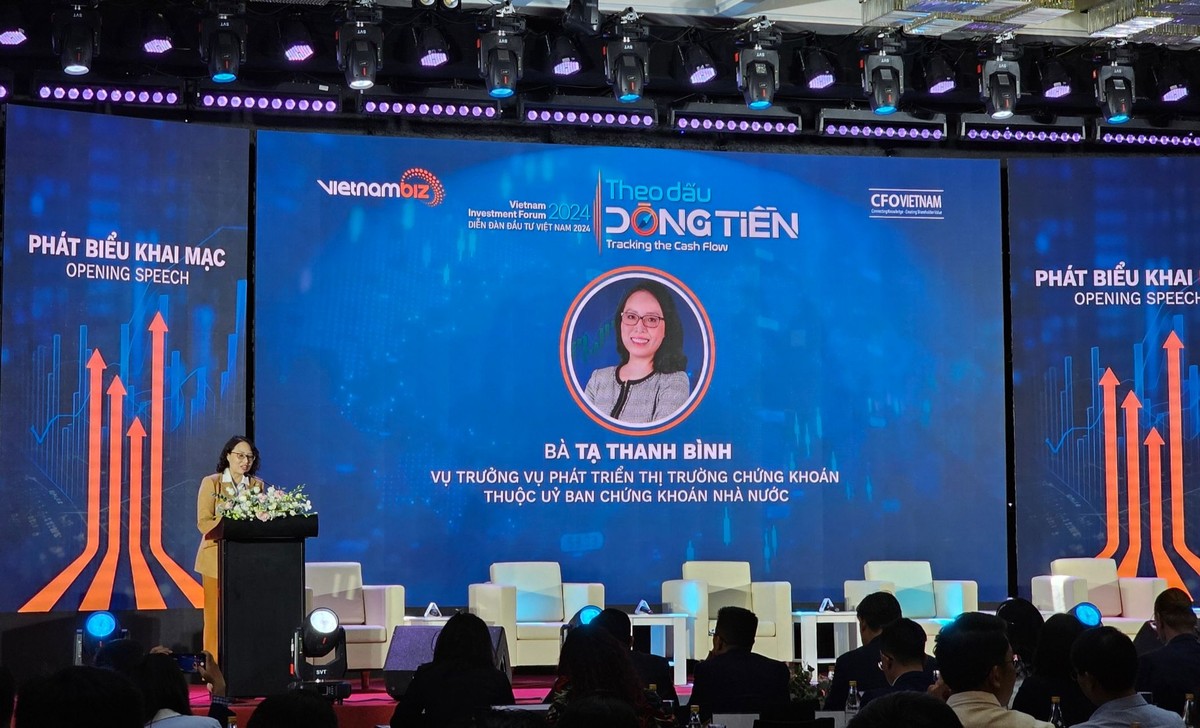 Đây là nội dung được bà Tạ Thanh Bình, Vụ trưởng Vụ phát triển thị trường, Uỷ ban Chứng khoán Nhà nước chia sẻ tại Diễn đàn Đầu tư Việt Nam 2024 với chủ đề “Theo dấu dòng tiền” do Vietnambiz phối hợp cùng Câu lạc bộ Giám đốc tài chính Việt Nam tổ chức chiều ngày 9/11.