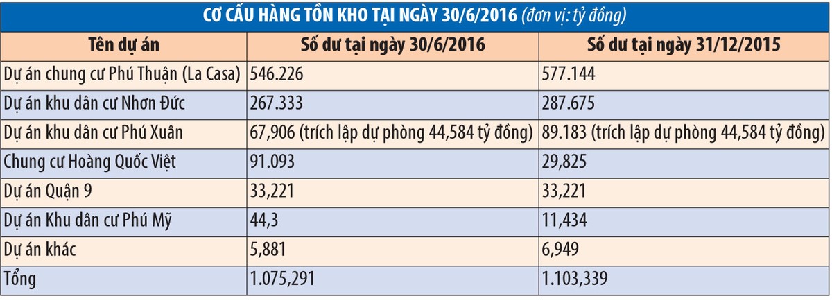 Cả năm 2010, Công ty chỉ thực hiện được hơn 84 tỷ đồng doanh thu (năm 2009 là gần 942 tỷ đồng), vay thêm được gần 50 tỷ đồng nợ ngắn hạn, 70 tỷ đồng nợ dài hạn để triển khai các dự án èo uột. Con số 990 tỷ đồng vay nợ chỉ có 191 tỷ đồng nợ phải trả dài hạn, bao gồm 132 tỷ đồng là khoản vay dài hạn. Trong khi đó, gần như toàn bộ tài sản là hàng tồn kho, với số dư 1.025 tỷ đồng.