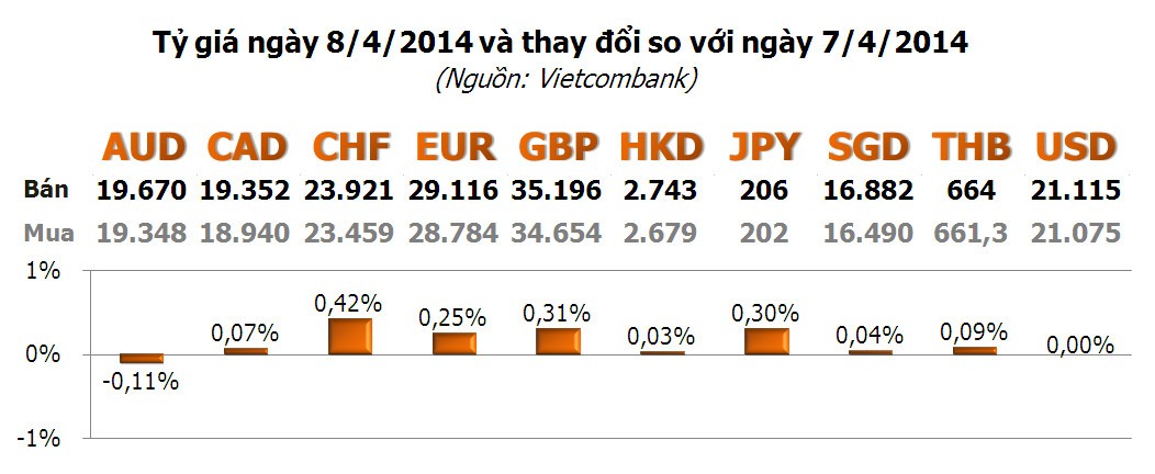 Sau phiên tăng/giảm bất ngờ trong ngày 7/4, hôm nay, Vietcombank duy trì mức tỷ giá USD 20.075 - 21.115 đồng/USD.