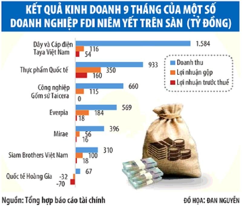 Tổng quát về kết quả kinh doanh nhóm doanh nghiệp FDI trên sàn, Ủy ban Chứng khoán Nhà nước mới đây cho biết, 7/10 doanh nghiệp FDI niêm yết, đăng ký giao dịch thường xuyên có lãi qua các năm trong giai đoạn 2016-2019, 3/10 doanh nghiệp FDI có kết quả kinh doanh thua lỗ (CYC, RIC, TCR).