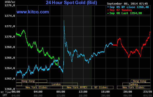 Giá vàng đã giảm trong tuần qua sau khi Chính phủ Ukraine đồng ý một thoả thuận ngừng bắn với quân ly khai ủng hộ Nga và đồng USD tăng lên mức cao nhất trong vòng hơn 1 năm so với đồng euro khi Ngân hàng Trung ương châu Âu cắt giảm lãi suất.