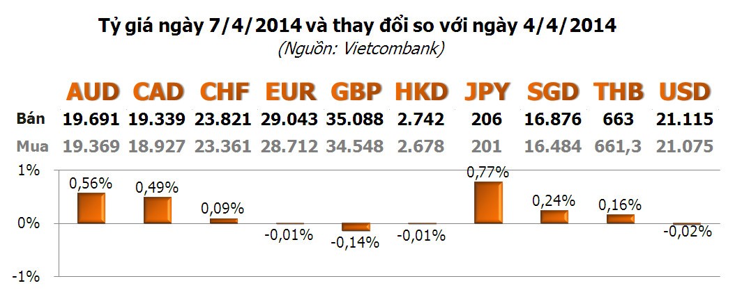 Với các ngoại tệ khác, đa số tăng trở lại, trong đó, đồng tiền giảm mạnh nhất tuần trước là JPY lại là đồng tiền tăng nhiều nhất, với 0,77%. Tiếp theo là AUD với 0,56%; CAD với 0,49%...