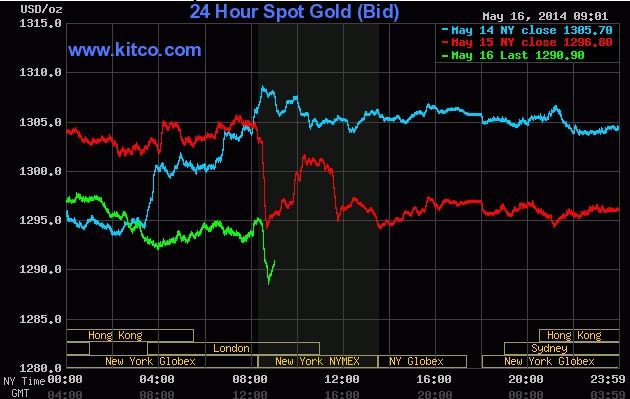 Giá vàng giao ngày đã ở mức 1.290,7 USD/ounce lúc 7h40 tối nay, gần với mức đóng cửa thị trường Mỹ ngày hôm qua.