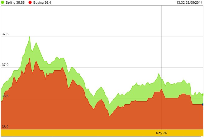 Giá vàng đã giảm 9,2% kể từ giữa tháng 3, thời điểm Nga thâu tóm bán đảo Crimea của Ukraine bên Biển Đen. Các lãnh đạo EU đã rút lại các biện pháp trừng phạt mạnh tay hơn với Nga sau khi Tổng thống Vladimir Putin biểu lộ sự sẵn sàng làm việc với lãnh đạo mới của Ukraine.