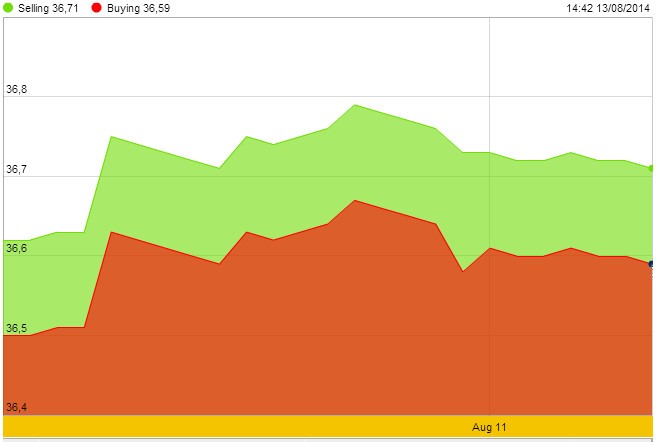Sang ngày 13/8, trong giờ giao dịch châu Á và châu Âu, vàng giữ ở dưới mức cao trong vòng 3 tuần khi các nhà đầu tư cân đối giữa khả năng tái chiến ở Gaza và căng thẳng lên cao trở lại giữa Ukraine và Nga với triển vọng kinh tế Mỹ và đồng USD mạnh hơn.