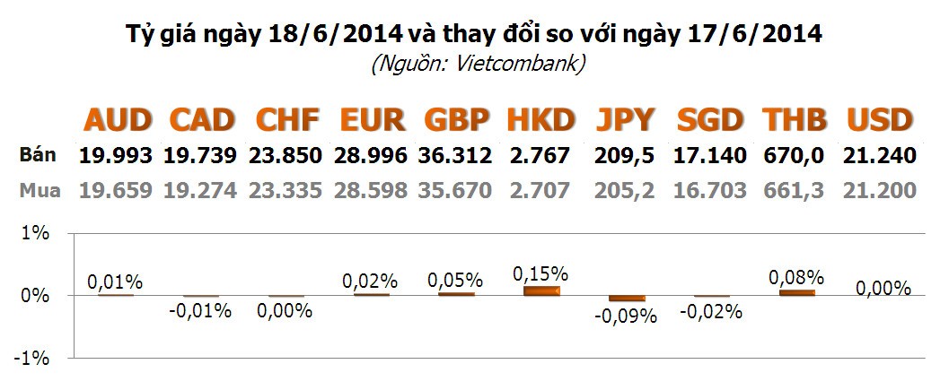 Trên thị trường ngoại tệ, giá USD tự do hôm nay bất ngờ tăng mạnh 25 đồng/USD ở giá mua, 30 đồng/USD ở giá bán lên tương ứng 21.290 - 21.310 đồng/USD. Trong khi đó, giá USD mua vào của Vietcombankđạt mức 21.300 đồng/USD lần đầu tiên kể từ 25/7/2013. Giá bán ra giữ nguyên mức 21.240 đồng/USD.