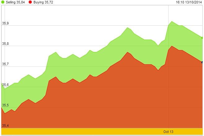 Tại thị trường trong nước, giá vàng SJC hôm nay tăng giá đầu ngày giao dịch trước khi giảm sau đó, mất gần hết thành quả tăng trong ngày. Cụ thể, giá vàng thương hiệu quốc gia tăng đến mức cao nhất trong ngày là 35,80 – 35,92 triệu đồng/lượng vào lúc 8h30 sáng. Từ đây, giá giảm đến cuối ngày còn 35,72 – 35,84 triệu đồng/lượng, chỉ cao hơn cuối tuần trước 10.000 đồng/lượng.
