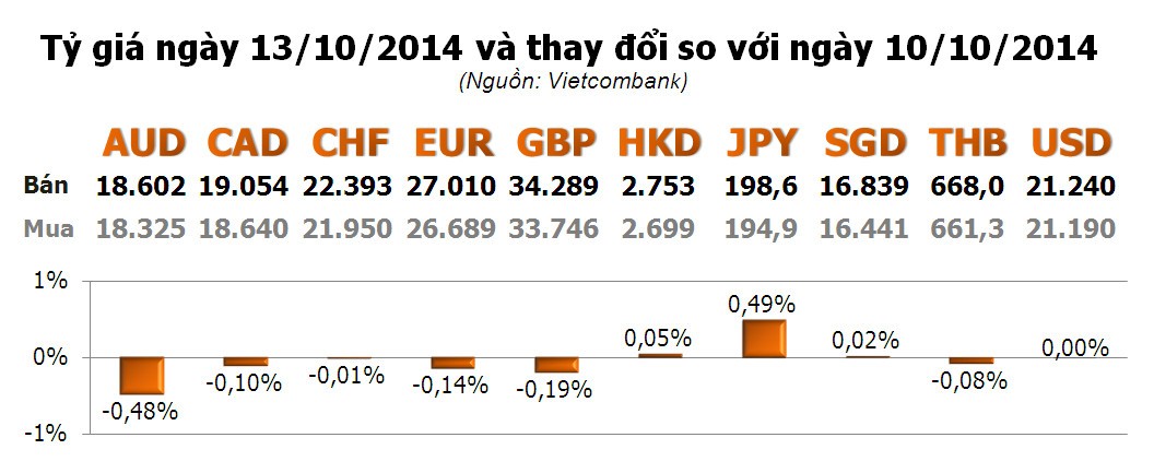 Các ngoại tệ khác, hầu hết cũng không thay đổi đáng kể, ngoại trừ JPY tăng 0,49% và AUD giảm 0,48%.