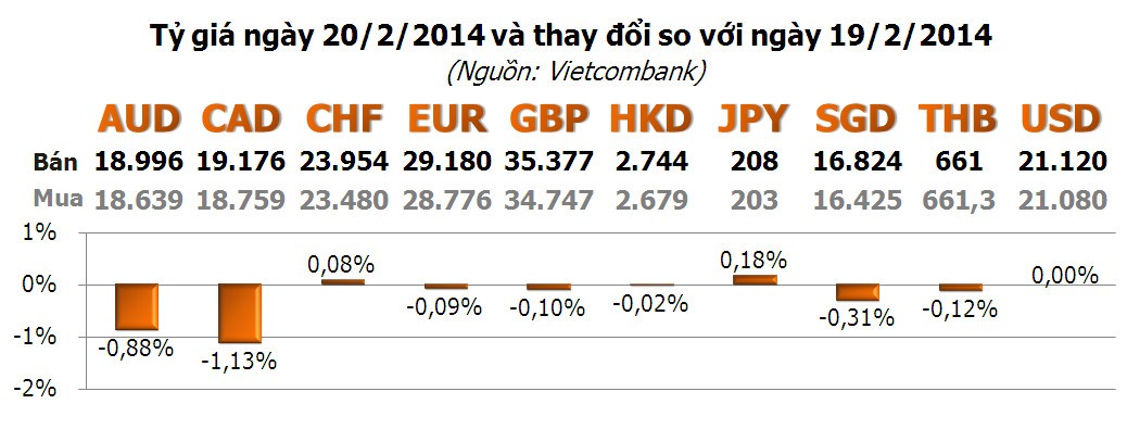 Các ngoại tệ khác đã chuyển sang chiều giảm nhiều hơn và cường độ mạnh hơn, dẫn đầu là CAD với -1,13%; tiếp đến là AUD với -0,88%; SGD với -0,31%. Các ngoại tệ khác tăng/giảm không đáng kể.