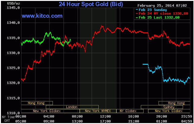 Giá vàng giao tháng 4 giảm 0,2% xuống còn 1.335,9 USD/ounce trên sàn Comex (New York), nơi khối lượng giao dịch thấp hơn 34% so với mức trung bình 100 ngày qua, theo dữ liệu từ Bloomberg.