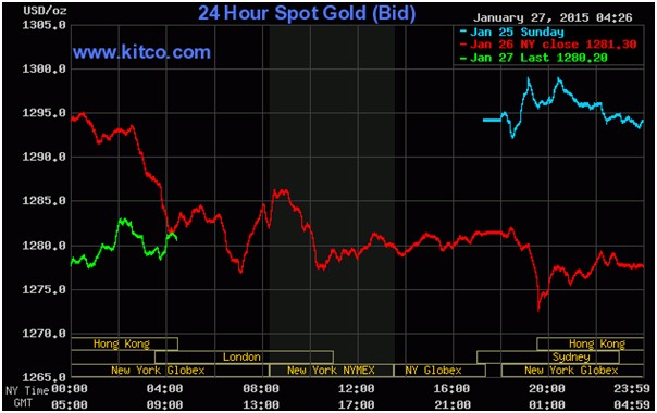 Sở dĩ giá vàng có xu hướng giảm là do các nhà đầu tư bán chốt lời sau đà tăng tuần trước và thị trường lo ngại chiến thắng của đảng phản đối chính sách thắt chặt chi tiêu tại Hy Lạp.