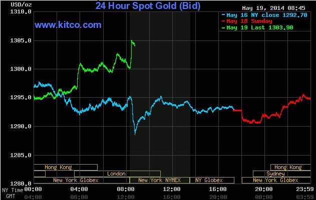 Giá vàng giao ngay đã tăng 0,6% lên 1.301,28 USD/ounce vào lúc 10h39 sáng nay, trên sàn London.