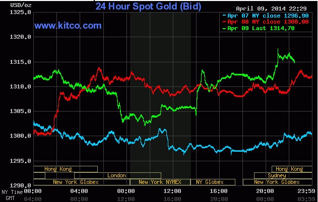 Vàng đã tăng 9,3% trong năm nay, sau khi có một năm giảm mạnh nhất trong vòng 3 thập kỷ, một phần từ căng thẳng ở Ukraine và lo ngại sự phục hồi của kinh tế Mỹ có thể chậm lại.