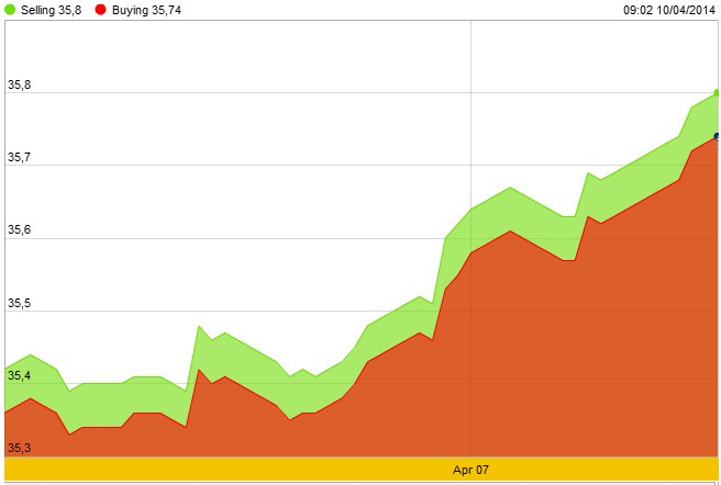 Trong nước, đầu giờ sáng nay, giá vàng SJC cũng tăng 60.000 đồng/lượng lên 35,74 - 35,80 triệu đồng/lượng.