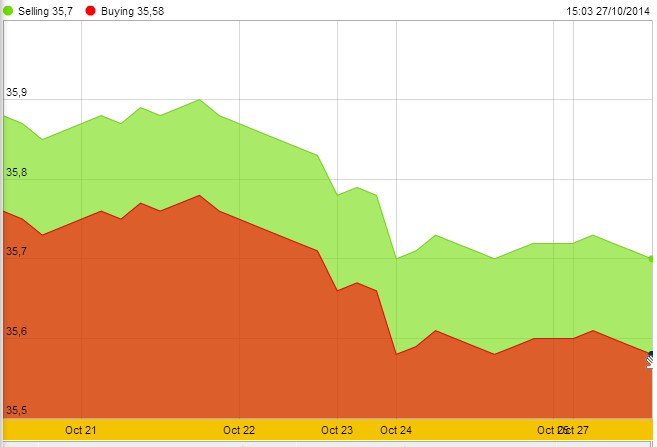 Cổ phiếu đã đạt mức cao nhất trong 2 tuần vào ngày hôm nay, khi không có đơn vị nào trong số các ngân hàng lớn nhất châu Âu bị trượt trong cuộc kiểm tra sức chịu đựng khủng hoảng của Ngân hàng Trung ương châu Âu (ECB). Quỹ Dự trữ Liên bang Mỹ (Fed) được dự báo sẽ kết thúc chương trình mua tài sản hàng tháng tại cuộc họp ngày 28-29/10 tới. Các nhà giao dịch đã đẩy lùi thời hạn ước tính tăng lãi suất khi các nhà hoạch định chính sách bày tỏ lo ngại nền kinh tế Mỹ có thể gặp rủi ro từ sự chậm lại của tăng trưởng toàn cầu.