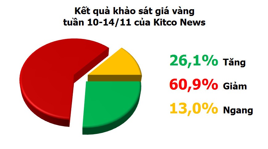Các thành viên thị trường trong khảo sát của Kitco News vẫn bi quan về giá vàng. Chỉ có 6 trong số 23 người trả lời khảo sát đoán giá vàng tăng trong tuần này, trong khi có 14 người đoán giá giảm và 3 người đoán giá đi ngang.