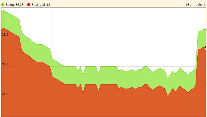 Tuần qua, giá USD tương đối ổn định trên cả thị trường tự do và ngân hàng. Cụ thể, giá USD tự do sau khi tăng 20 đồng trong ngày đầu tuần thì chỉ một lần giảm 10 đồng trong ngày 6/11 rồi giữ đến hết tuần ở mức 21.340 – 21.370 đồng/USD. Giá USD do Vietcombank niêm yết tăng 15 ngày đầu tuần, giảm hai lần trong tuần, nhưng chốt tuần tăng lại mức 21.270 – 21.320 đồng/USD.