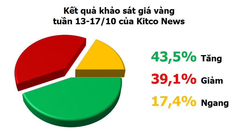 Theo khảo sát của Kitco News, trong số 23 thành viên thị trường trả lời, có 10 người đoán giá vàng sẽ tăng trong tuần này, 9 người đoán giá giảm và 4 người đoán giá đi ngang.