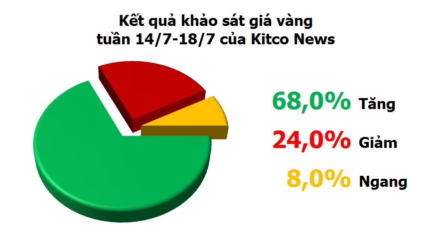 Theo kháo sát của Kitco News, trong số 25 thành viên thị trường trả lời, có 17 người đoán giá vàng sẽ tăng trong tuần tới, 6 người đoán giá giảm và 2 người trung lập.
