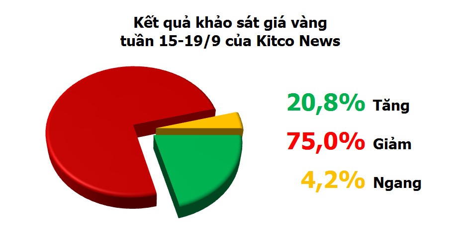 Theo khảo sát của Kitco News, trong số 37 thành viên thị trường được hỏi, có 24 người trả lời, và trong số này, có 5 người đoán giá tăng, 18 người đoán giá giảm và 1 người đoán giá đi ngang trong tuần tới.