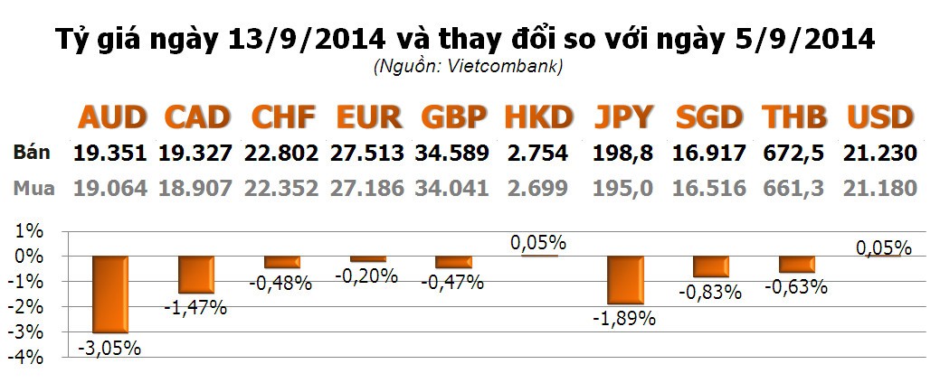 Trên thị trường quốc tế, như đã nói, đồng USD tiếp tục tăng giá, do nền kinh tế Mỹ tiếp tục cải thiện và dự đoán Fed sẽ tăng lãi suất trong năm tới. Cụ thể, cặp AUD/USD đã giảm mạnh còn 0,9030 khi chốt tuần qua, so với mức 0,9373 cuối tuần trước đó; cặp USD/JPY thì tăng mạnh lên mức 108,3 khi chốt tuần, so với mức 105,0 trước đó 1 tuần.