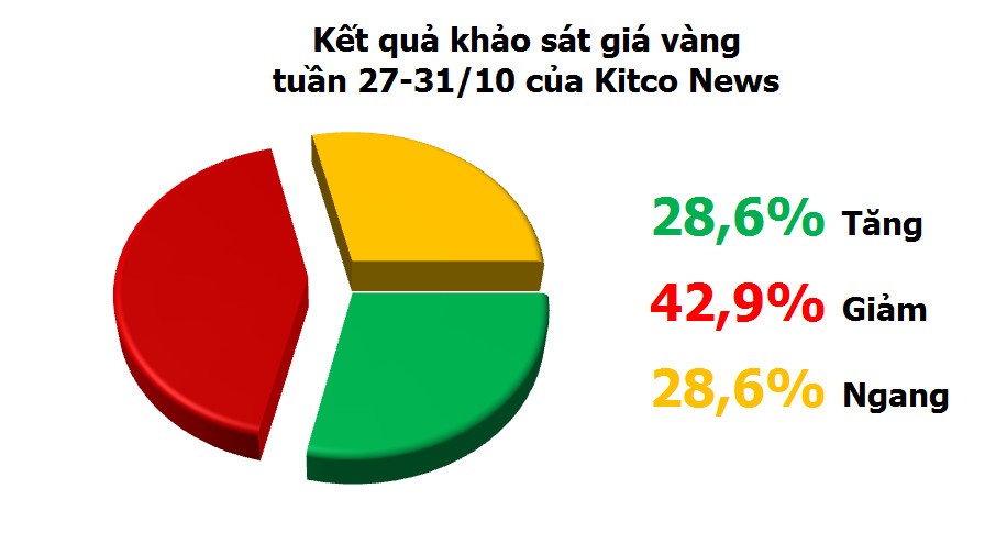 Theo khảo sát của Kitco News, có 6 người đoán giá tăng trong tuần này, 9 người đoán giá giảm và 6 người đoán giá đi ngang.