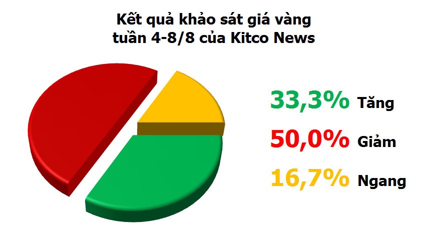 Theo khảo sát của Kitco News về dự đoán giá vàng trong tuần tới, có 12 người đoán giá giảm, 8 người đoán giá tăng và 4 người đoán giá đi ngang.