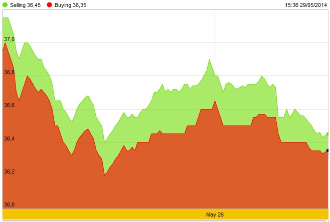 USD ngân hàng lên cao nhất kể từ 27/8/2013