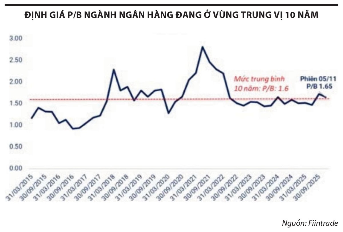 Trong bối cảnh định giá VN-Index đã về quanh mức trung vị 10 năm, không còn rẻ như đầu năm 2025, cộng với mặt bằng lợi nhuận từ quý IV/2024 trở đi khá cao, tạo hiệu ứng nền khó vượt, ông Bùi Văn Huy cho rằng, kịch bản hợp lý là nhóm tài chính vận động ì hơn mặt bằng chung trong giai đoạn tới. Riêng nhóm chứng khoán, lợi nhuận gần đây được thúc đẩy bởi khoản tự doanh - tính chất đột biến, khó lặp lại trong quý IV/2025 và sang năm 2026.