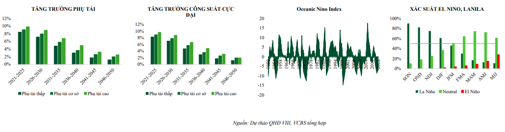 Trong kịch bản cơ sở, nhu cầu phụ tải được dự báo sẽ đạt mức tăng trưởng kép ở mức 9,08%/năm trong giai đoạn 2021 - 2025 và 7,95%/năm trong giai đoạn 2026-2030, công suất cực đại cũng được dự báo tăng trưởng ở mức tương đương. Công suất cực đại dự báo tăng trưởng lần lượt 8,91%/năm và 7,82%/năm trong giai đoạn 2021 - 2025 và 2026 - 2030.