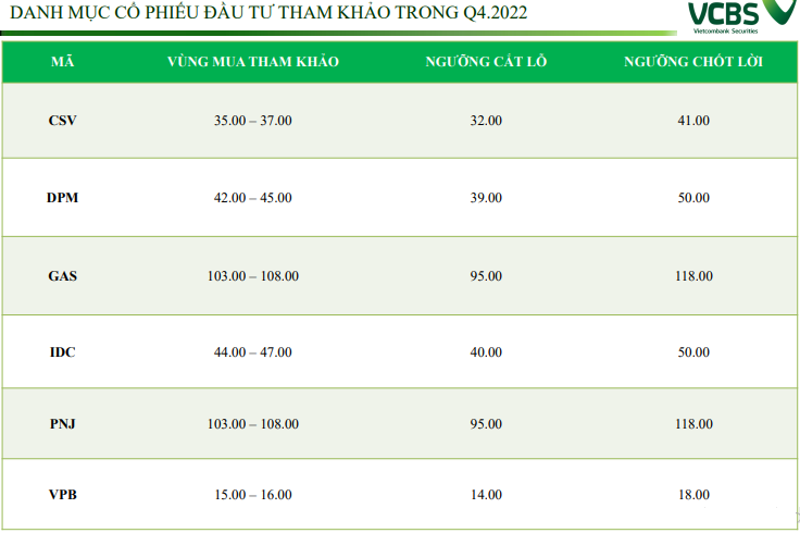 Trong bối cảnh hiện tại, VCBS cho rằng, VN-Index gần như không thể quay lại được mức cao nhất đã đạt được vào tháng 4/2022. Hiện tại, vùng 950 - 1.000 điểm vẫn đang là vùng điểm số hỗ trợ gần nhất của thị trường và VCBS không kỳ vọng khả năng VN-Index rơi xuống dưới mức này mà cho rằng chỉ số sẽ dao động trong vùng 1.000 – 1.200 điểm trong quý IV.