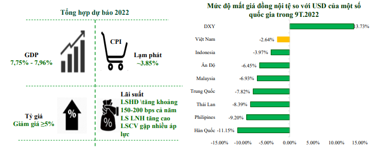 Theo đó, các chuyên gia cho rằng có 3 yếu tố kinh tế chính sẽ chi phối thị trường chứng khoán trong quý IV/2022. Thứ nhất, đà phục hồi tăng trưởng như đã thấy trong nửa đầu năm và quý III/2022 vẫn tiếp diễn, nhưng VND tiếp tục chịu áp lực mất giá so với USD.