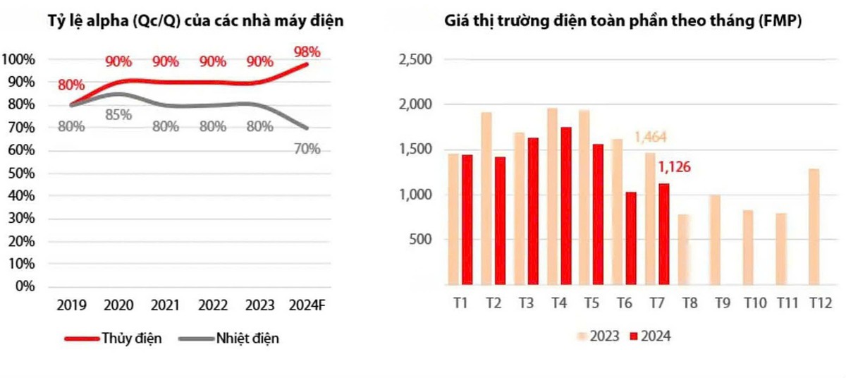 Điều này tạo sức ép đối với kết quả kinh doanh của các nhà máy thủy điện lớn (trên 30MW), vốn phụ thuộc vào thị trường phát điện cạnh tranh để cải thiện hiệu quả hoạt động, do giá FMP nhìn chung cao hơn giá hợp đồng (Pc) đối với nhóm thủy điện. Do vậy, mặc dù pha La Nina đang có xác suất cao sẽ diễn ra từ tháng 8/2024, VDSC cho rằng hiệu quả kinh doanh của nhóm thủy điện sẽ chưa thực sự khởi sắc.