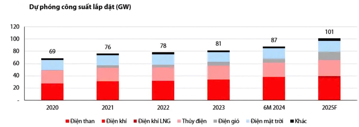 Trong năm 2025, sự đóng góp của thủy điện sẽ cao hơn nhờ chu kỳ thời tiết thuận lợi cùng với nhiệt điện khí LNG. Trong khi đó, điện than không còn dư địa để phát triển (tối đa 30,1 MW tới năm 2030, thực tế 6 tháng 2024 đã đạt 29,5 MW), nguồn năng lượng tái tạo mới hiện vẫn chờ hoàn thiện các cơ chế cần thiết để triển khai, còn điện khí thiên nhiên gặp vấn đề về nguồn cung nhiên liệu.