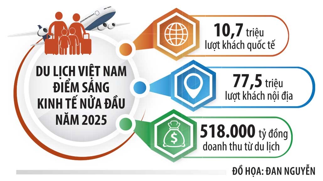 Ngành du lịch Việt Nam đang có nhiều cơ hội bứt phá khi trở thành điểm sáng trong bức tranh kinh tế 6 tháng đầu năm 2025. Với gần 10,7 triệu lượt khách quốc tế, hơn 77,5 triệu lượt khách nội địa và tổng thu đạt 518.000 tỷ đồng, mức tăng trưởng ấn tượng đã được xác lập giữa bối cảnh địa chính trị thế giới nhiều bất ổn và cạnh tranh du lịch ngày càng khốc liệt.