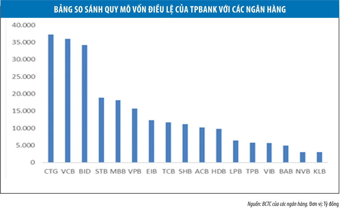 Một điểm đáng chú ý là vốn điều lệ của TPBank thuộc dạng trung bình so với các ngân hàng thương mại cổ phần khác. Với tốc độ tăng trưởng hiện tại, tỷ lệ CAR đã ở mức trên 9%, cao hơn mức tối thiểu được Ngân hàng Nhà nước yêu cầu. Tuy nhiên, với quy mô vốn hiện tại, TPBank được giới phân tích đánh giá là có nhiều dư địa để tăng thêm vốn bằng việc thu hút các nhà đầu tư trong và ngoài nước.