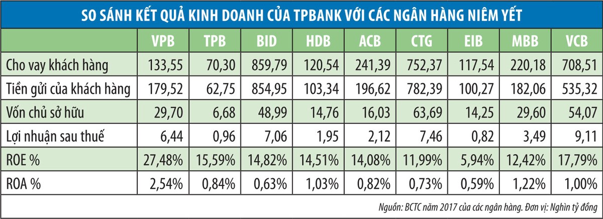 Phân tích của CTCK Sài Gòn (SSI) cho biết, sự tăng trưởng mạnh này chủ yếu đến từ tăng trưởng tín dụng khả quan. Hoạt động tín dụng năm 2017 của TPBank được đánh giá tốt với tình hình thực hiện các chỉ tiêu tài chính vượt kế hoạch đã đề ra, chi phí hoạt động và nợ xấu được kiểm soát tốt so với mức chung của toàn ngành. Chất lượng nợ tiếp tục được cải thiện và tỷ lệ nợ xấu ở mức thấp, xấp xỉ 1% tổng dư nợ tại thời điểm cuối năm 2017.