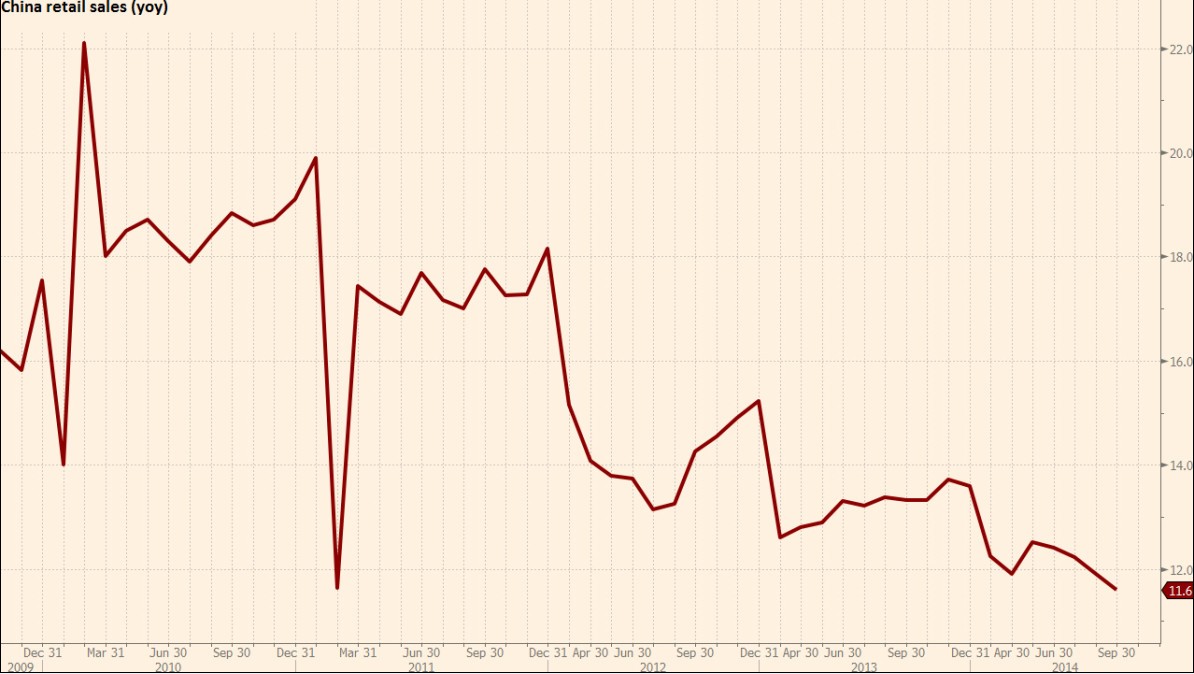 Đầu tiên, sản lượng công nghiệp của Trung Quốc chỉ cao hơn mức thấp của 5 năm. Điều này phản ánh thực trạng yếu ớt của nền kinh tế toàn cầu, đặc biệt là châu Âu, trong khi các doanh nghiệp Trung Quốc như các công ty thép và các doanh nghiệp xi măng đang chật vật với thị trường nhà ở sụt giảm sau nhiều năm điên cuồng đầu tư bất động sản. Tuy nhiên, tăng trưởng sản lượng công nghiệp đã hồi về mức 8% trong tháng 9, và điều này có thể ngăn Chủ tịch Tập Cận Bình không đưa ra thêm các biện pháp kích thích kinh tế.