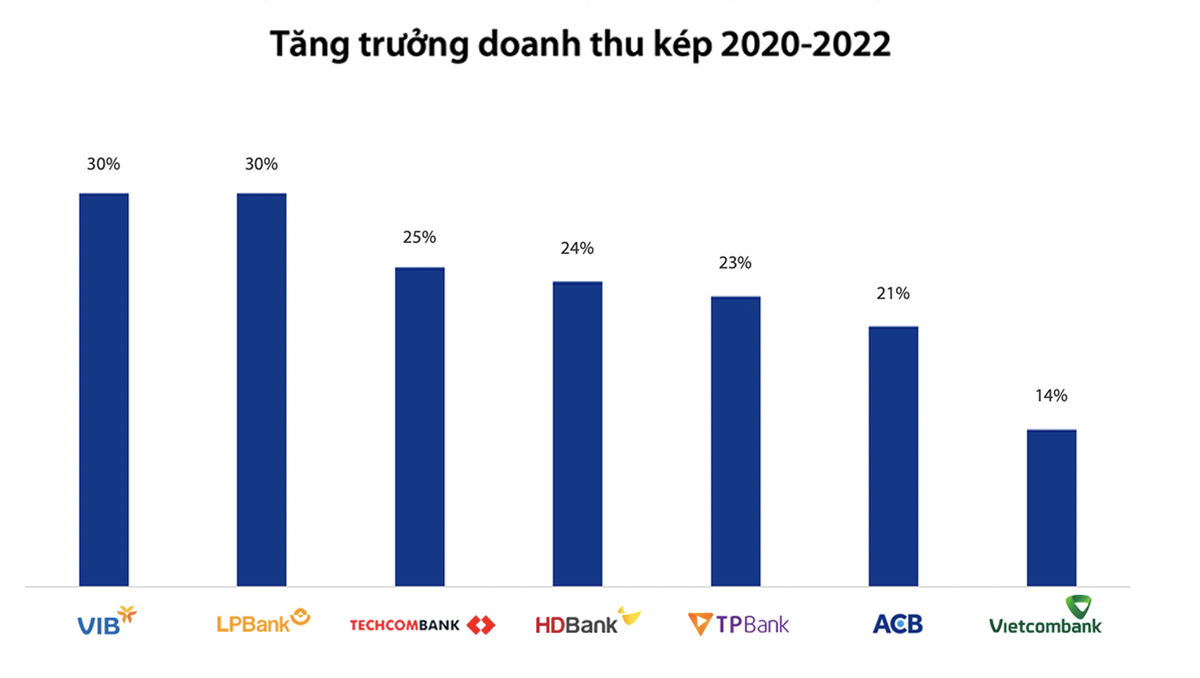 Trong 3 năm 2020-2022, chỉ số ROE của VIB vượt trội với tỷ lệ trung bình đạt tới 30%, trong khi ACB là 25%, TPBank (23%), HDBank (23%), Vietcombank (22%), Techcombank (20%), LPBank (18%).