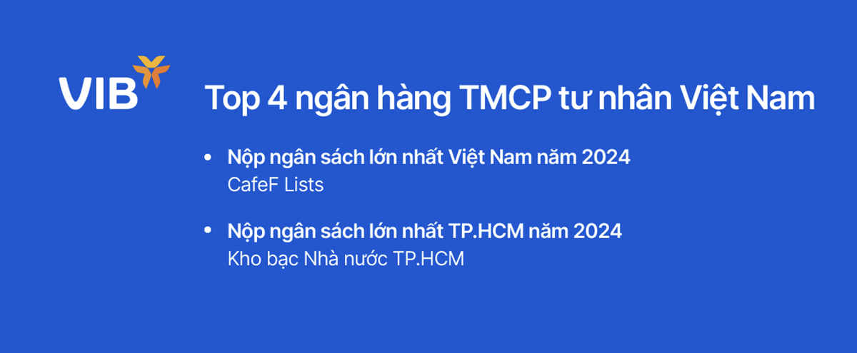 Năm 2024, VIB được vinh danh trong top 4 ngân hàng thương mại cổ phần tư nhân đóng góp ngân sách lớn nhất Việt Nam. Đầu năm 2025, VIB tiếp tục nhận bằng khen từ Kho bạc Nhà nước và UBND TP.HCM vì thành tích xuất sắc trong công tác nộp ngân sách Nhà nước, là một trong 4 ngân hàng có mức đóng góp ngân sách lớn nhất cho TP.HCM năm 2024.