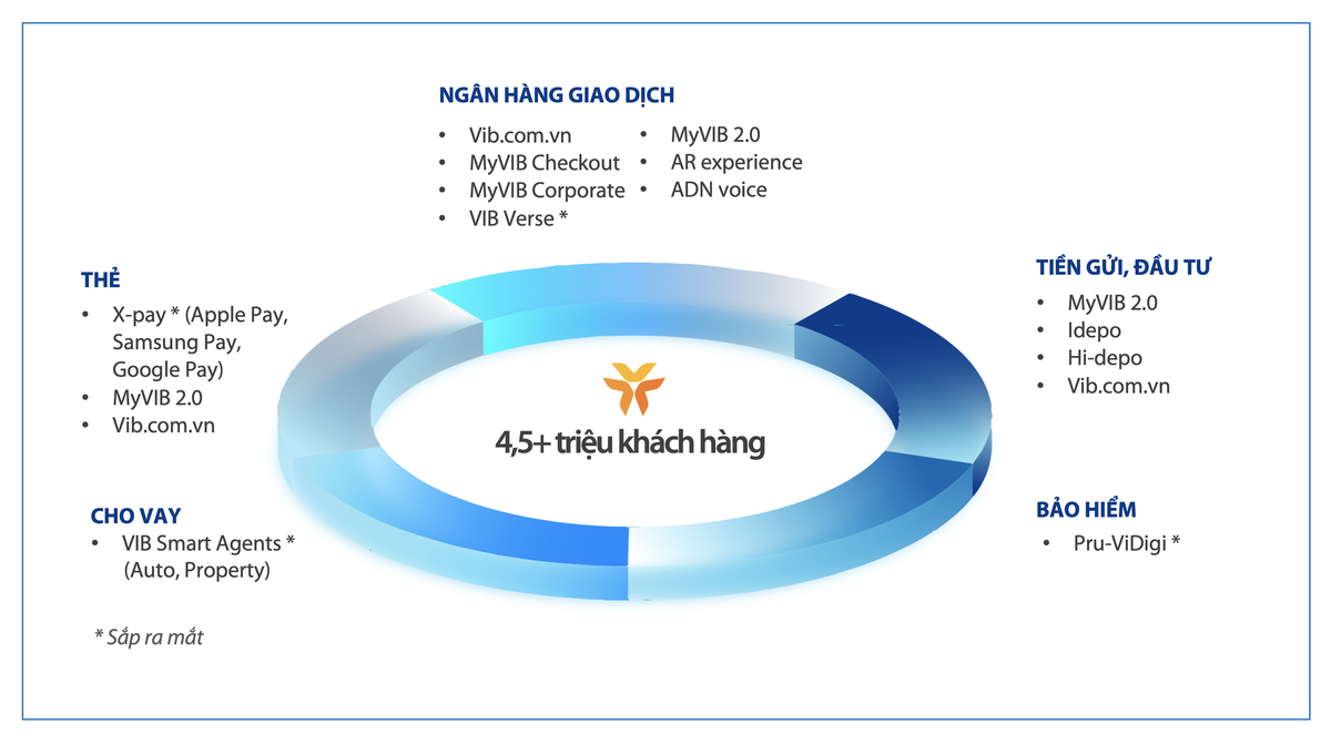 Với chiến lược nhất quán lấy khách hàng làm trọng tâm trong quá trình số hóa và chuyển đổi số, VIB tiên phong ứng dụng nhiều công nghệ mới và xây dựng các chuỗi giá trị nhằm mang đến cho khách hàng những trải nghiệm tốt hơn. Kể từ đầu năm 2023, VIB cho ra mắt thêm nhiều sản phẩm ngân hàng số với đa dạng tính năng mang lại tiện ích cho người dùng. Nhờ vậy, giao dịch qua kênh số trong 6 tháng đầu năm lên tới hơn 150 triệu lượt, dự kiến tăng gấp 3 so với năm 2022. Số lượng người dùng hoạt động lên tới hơn 1,5 triệu người, tăng gần 40% so với đầu năm.