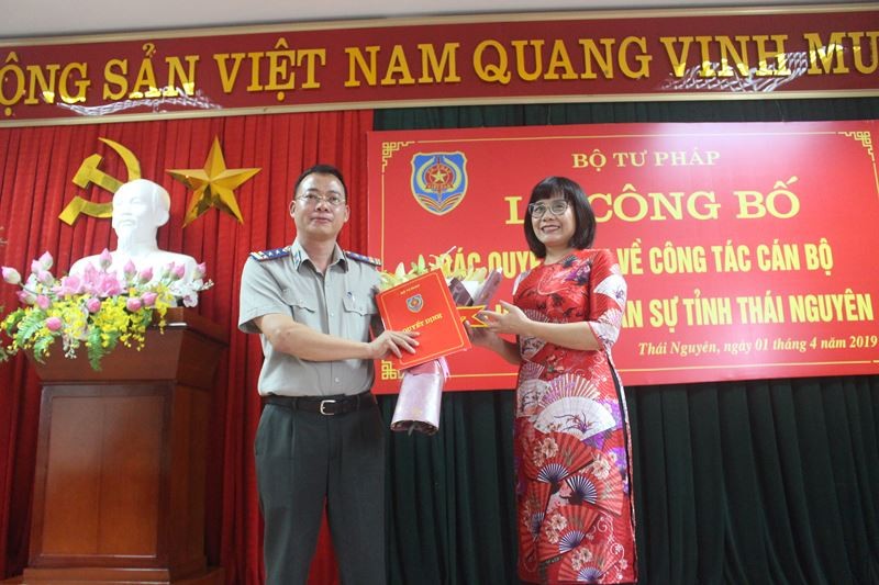Chiều 1/4, Thứ trưởng Bộ Tư pháp Đặng Hoàng Oanh đã trao Quyết định số 668/QĐ-BTP của Bộ trưởng Bộ Tư pháp về việc điều động, bổ nhiệm đồng chí Nguyễn Xuân Tùng, Chánh Văn phòng Tổng cục Thi hành án dân sự giữ chức vụ Cục trưởng Cục Thi hành án dân sự tỉnh Thái Nguyên kể từ ngày 1/4/2019 (thay đồng chí Dương Văn Quyết, Cục trưởng Cục Thi hành án dân sự tỉnh Thái Nguyên nghỉ hưu theo chế độ).