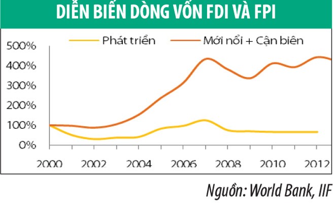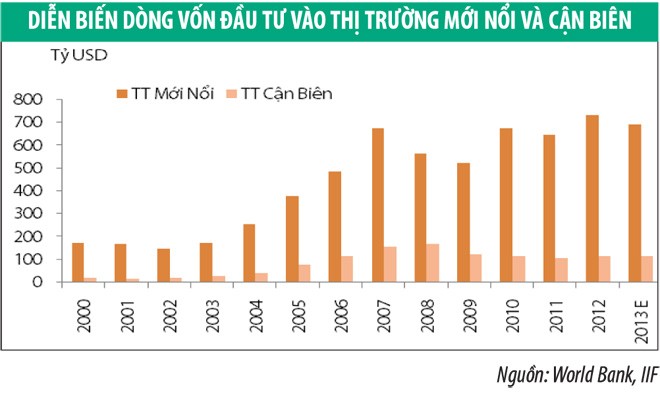 Tính chung cả vốn FDI và FPI, lượng vốn đầu tư năm 2013 vào thị trường mới nổi đạt khoảng 693 tỷ USD (giảm 5,6% so với năm 2012). Đối với thị trường cận biên, lượng vốn đầu tư không thay đổi nhiều so với năm 2013, đạt 116 tỷ USD, điều này cho thấy cú sốc từ việc thu hẹp gói QE3 gây tổn thương cho các thị trường mới nổi nhiều hơn các thị trường cận biên.